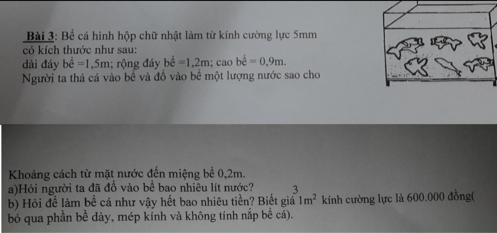 Lượng nước có trong bể là: