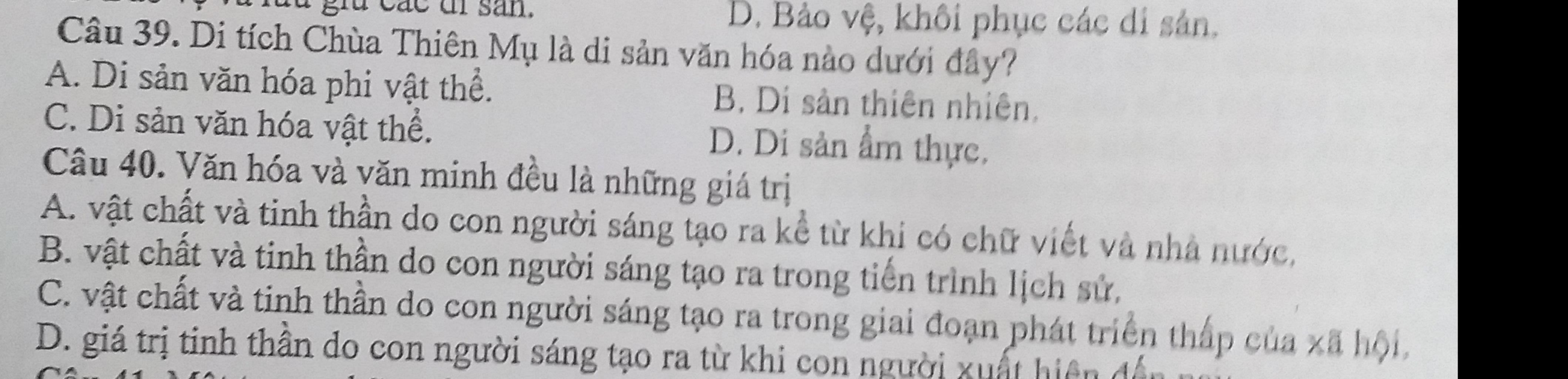 Đáp án B. Là vật chất và tinh thần con người tạo ra trong tiến trình lịch sử