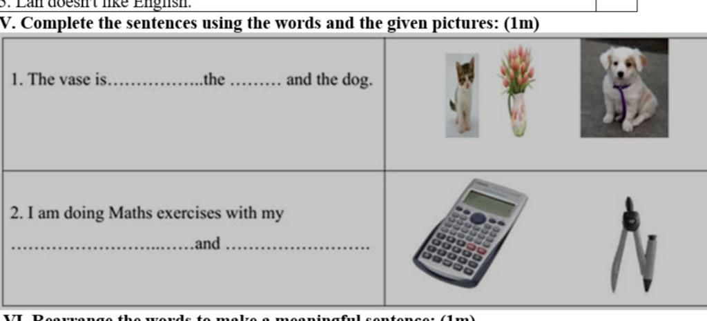 [Nghĩa của câu: Tôi đang làm bài tập với chiếc máy tính và cây compa của mình ]