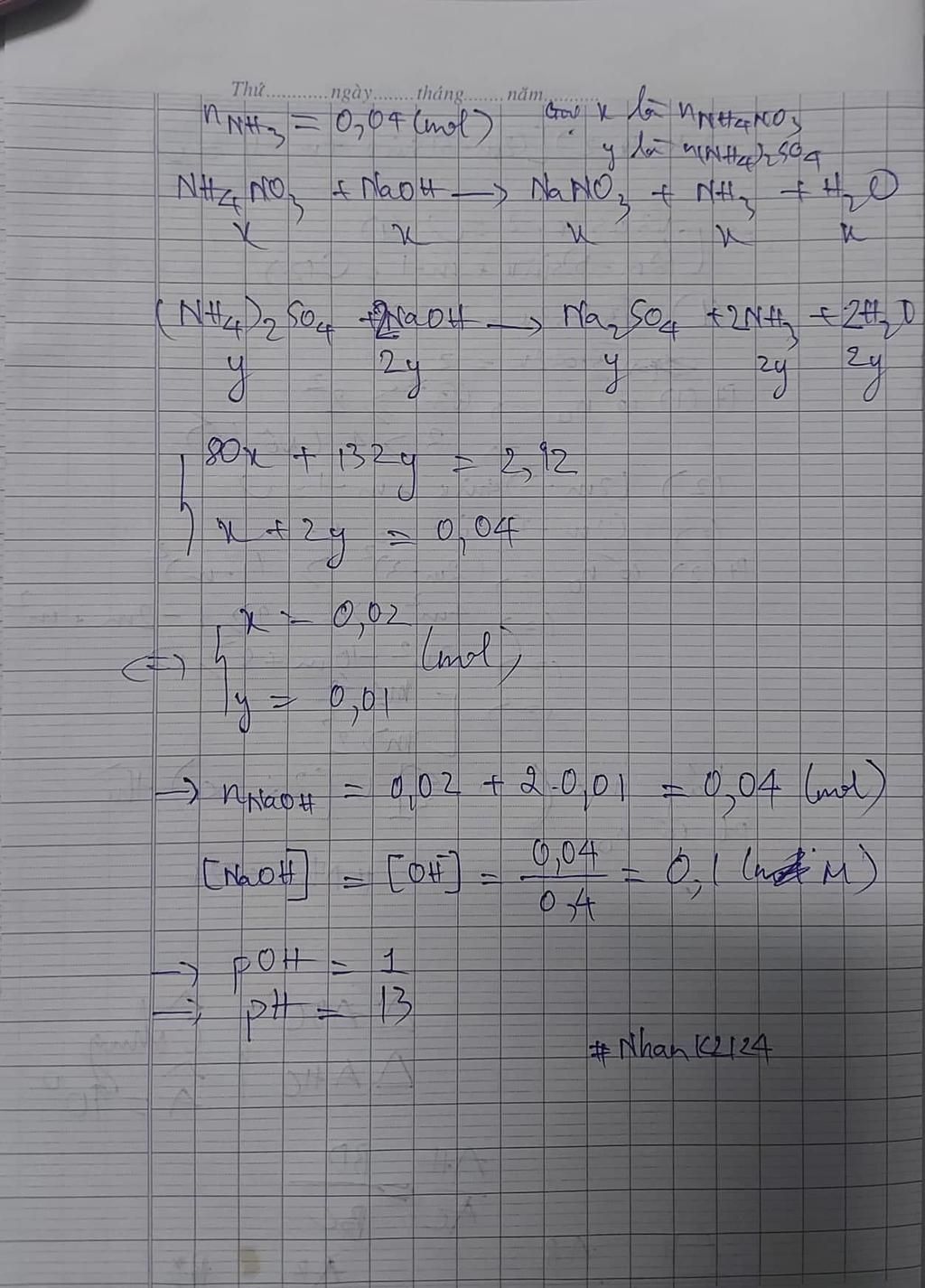 Bảo toàn nguyên tố N: