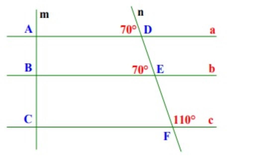 b) Đường thẳng m ko song song với a và c vì m cắt a và c
