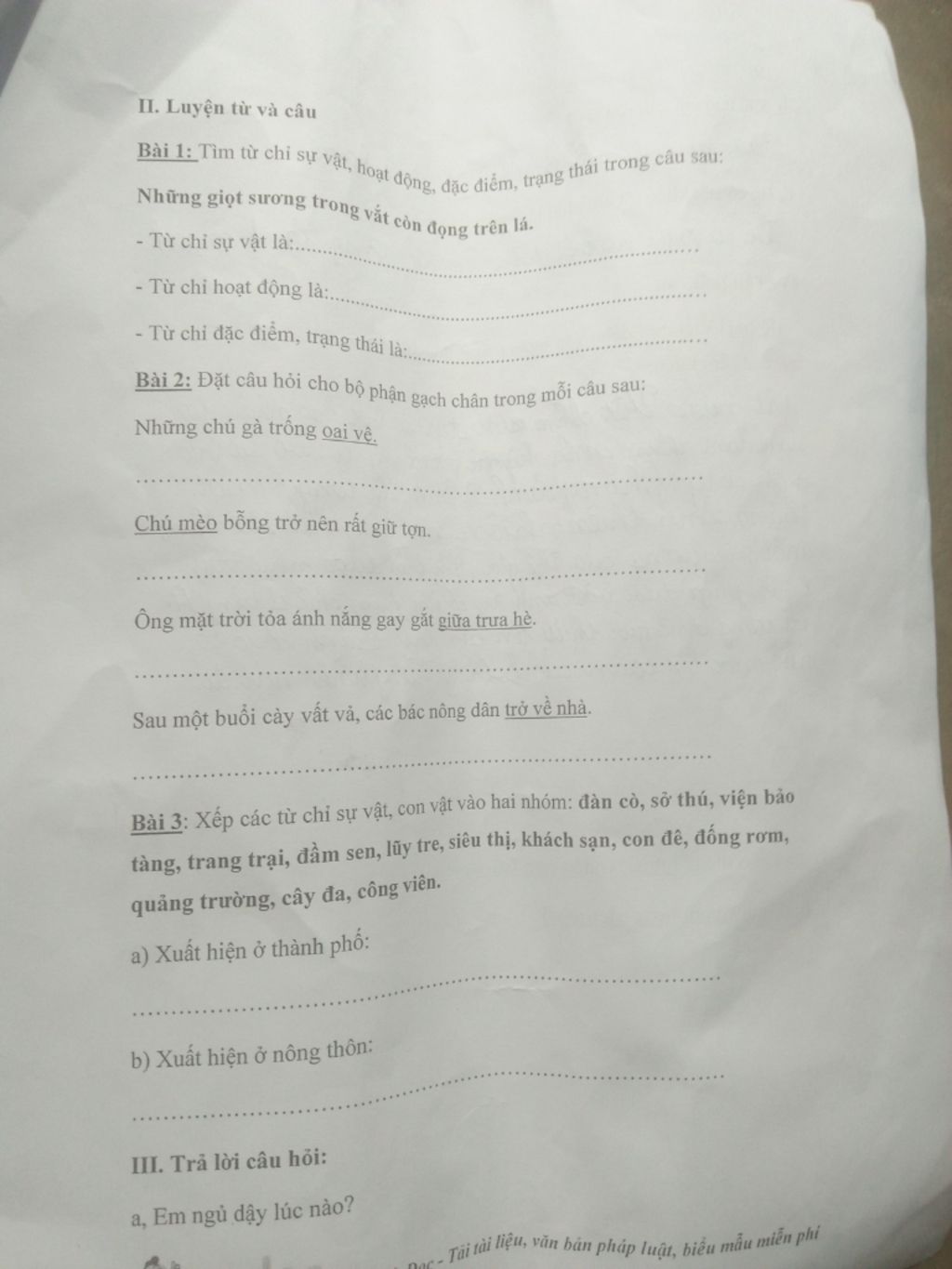 a) Xuat hien o thanh pho : sở thú, viện bảo tàng, siêu thị, khách sạn, quảng trường, công viên