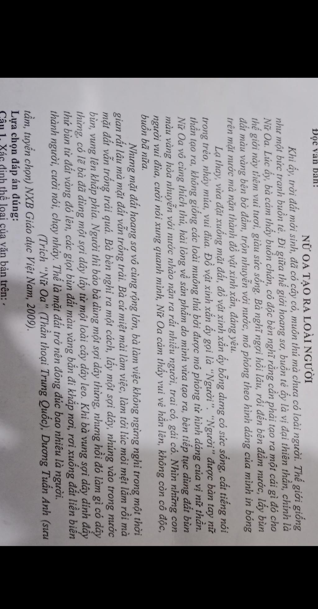 Nữ Oa. Lúc ấy, bà cảm thấy buồn chán, cô độc bèn nghĩ rằng cần ph ...
