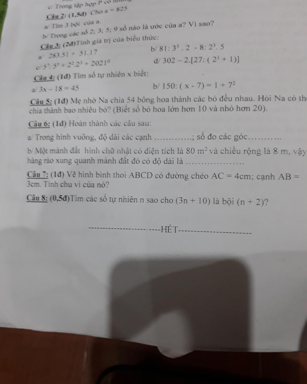 Câu 4: (1đ) Tìm số tự nhiên x biết: