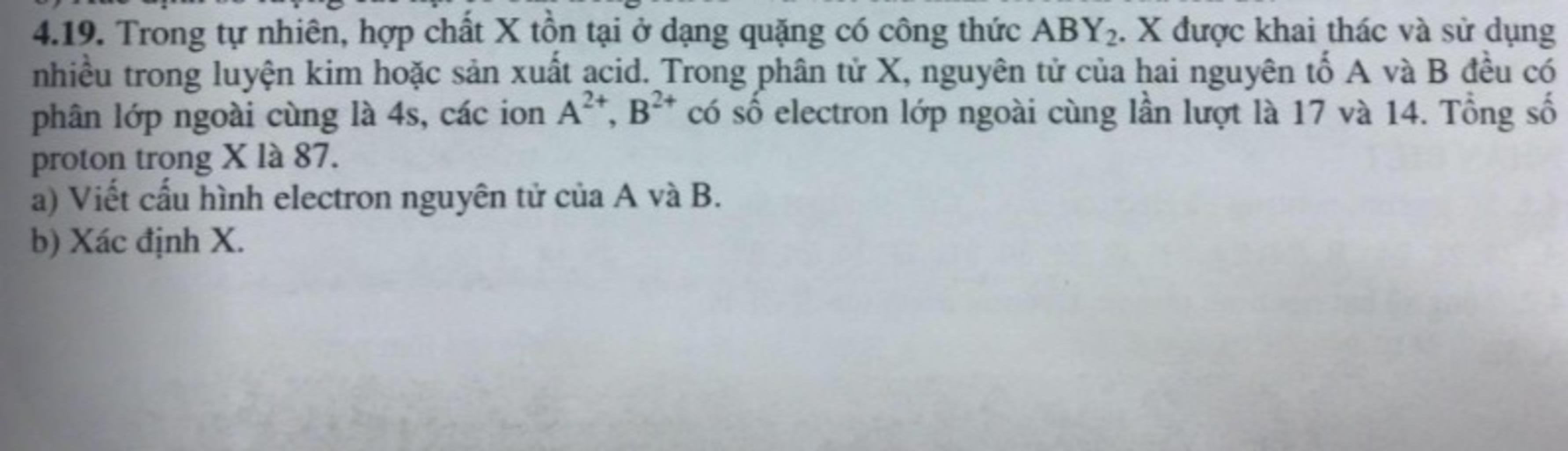 4.19. Trong tự nhiên, hợp chất X tồn tại ở dạng quặng có công thức ABYz. X được khai thác và sử dụng