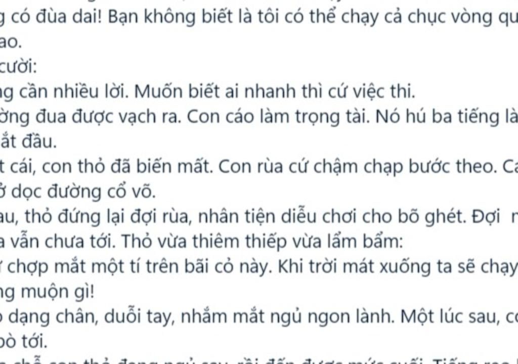 t cái, con thỏ đã biến mất. Con rùa cứ chậm chạp bước theo. C