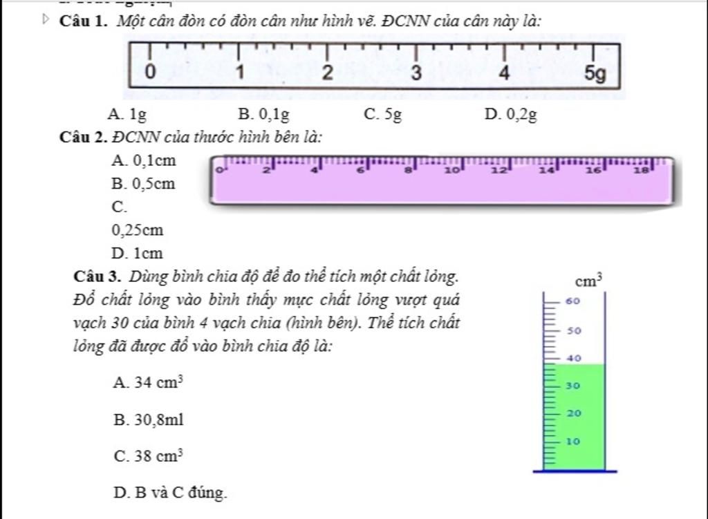 Câu 3. Dùng bình chia độ để đo thể tích một chất lỏng.