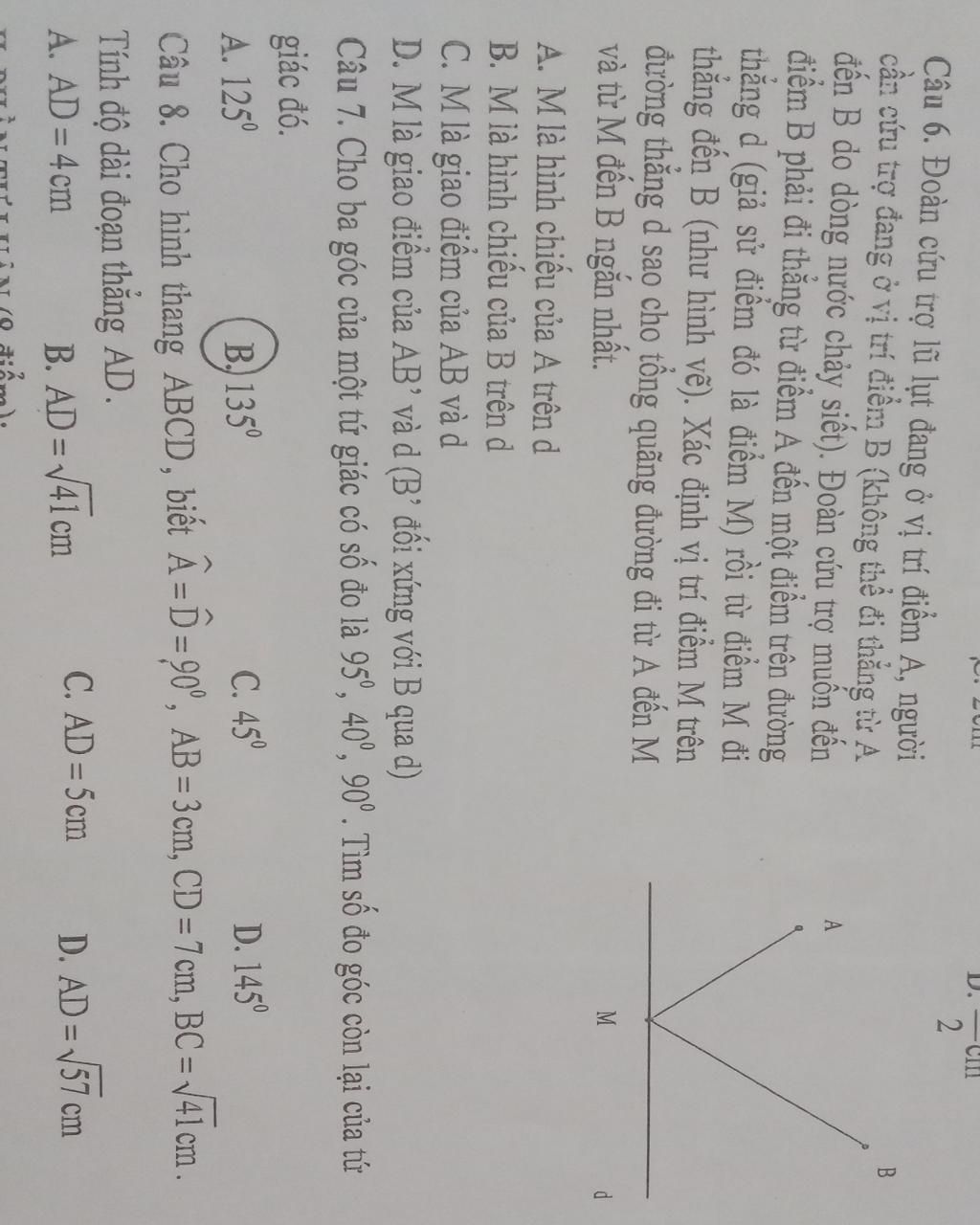 Câu 6. Đoàn cứu trợ lũ lụt đang ở vị trí điểm A, người