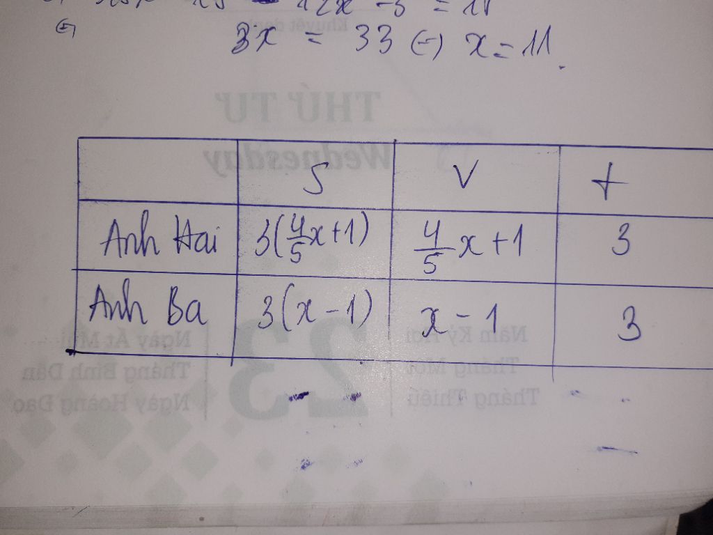 Vận tốc của anh Hai tăng `1`$km/h$ nên: `4/5x+1` `(`$km/h$`)`