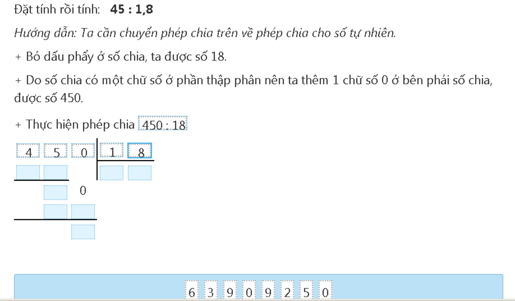 450 :18= 25 ( xin lỗi vì cj ko thể trình bày chi tiết ra cho em nha, vì cj dùng mt và không biết làm cột như vậy phải làm thế nào, nói chung là sorry)