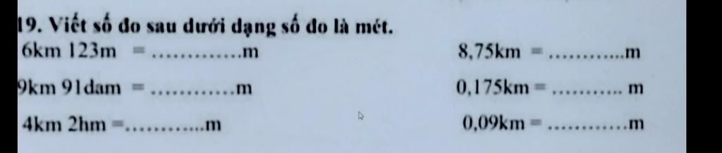 1km = 1000m nên 6 x 1000 +123 = 6123 m