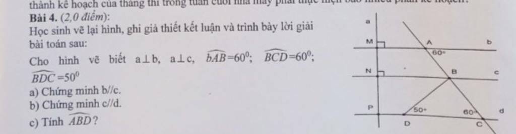 c,ta có $\widehat{ABN}$= 60 độ ( b//c)