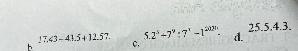 c, 5.2^3 + 7^9 : 7^7 - 1^2020