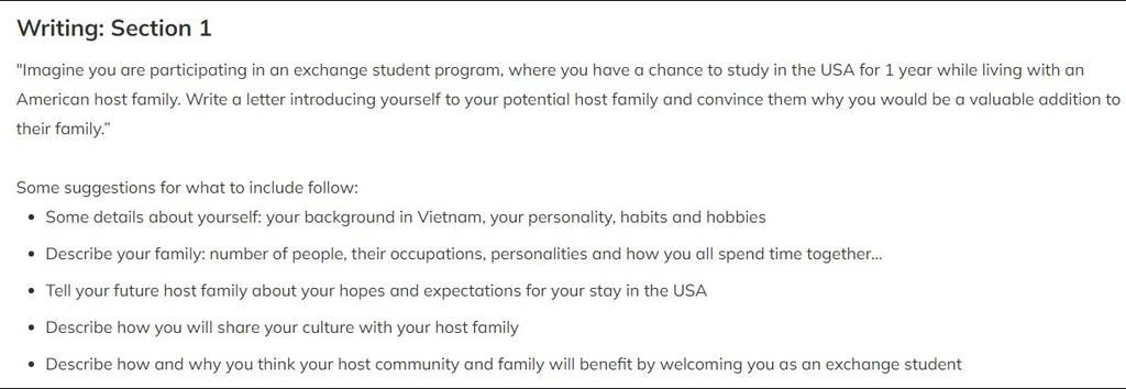 My name is ....(b tự vt tên của mình). I am ... years old and from the small city ....(ghi tên thành phố của b). With my parents, and my brother ...(có anh chị em thì ghi vào ko thì th) (15), I am living in a house that is located in an area full of nature. We have got two cats and two rabbits, who love to cuddle all day. My father works as a roofer at a small firm, my mother works as an office clerk. Luca is currently attending the 10th grade of secondary school. Overall, we are a pretty large family, I have ten cousins.