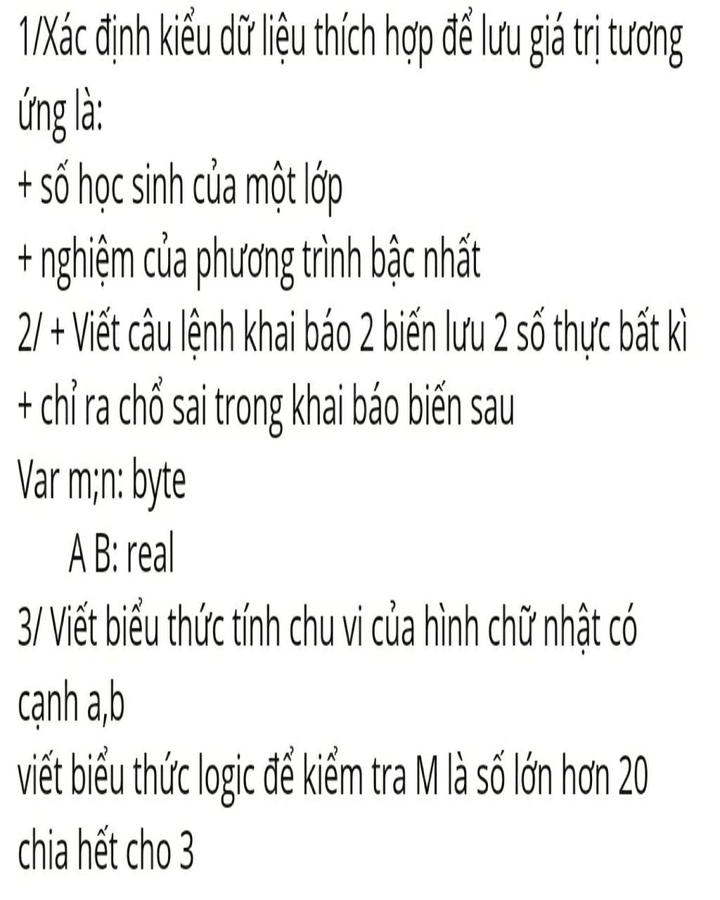 + Viết câu lệnh khai báo 2 biến lưu 2 số thực bất kì: Var a,b:real;