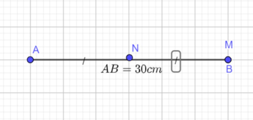 Vì `AM=AB=30cm` và `M` nằm trên đoạn thẳng `AB` nên ta biết điểm `M` và `B` trùng nhau.