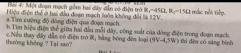 `*` Điện trở tương đương của đoạn mạch khi thay `R_1` bằng bóng đèn: