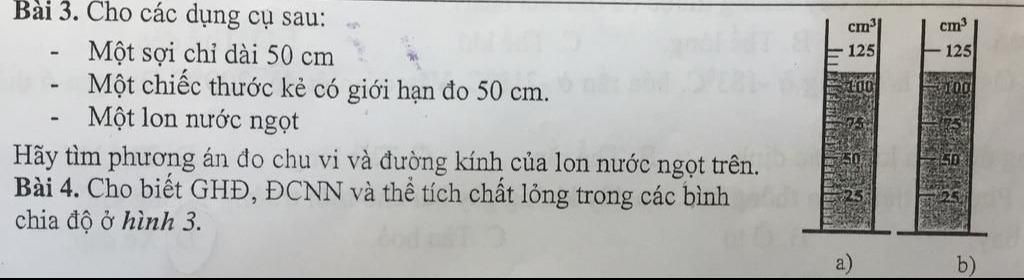 Bài 4. Cho biết GHĐ, ĐCNN và thể tích chất lỏng trong các bình