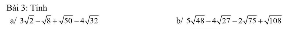 b) `5\sqrt{48} - 4\sqrt{27} - 2\sqrt{75} + \sqrt{108}`