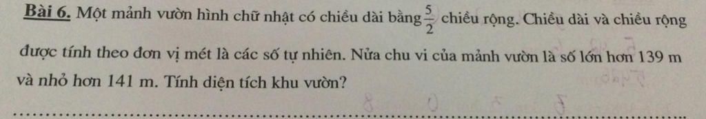 nửa chu vi khu vườn là số lớn hơn 139m và bé hơn 141m vậy nửa chu vi là 140