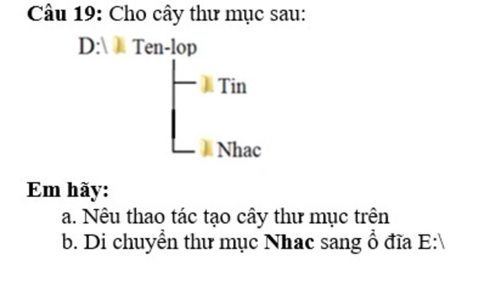 b) - Truy cập vào ổ đĩa D, sau đó truy cập vào thư mục Ten-lop, nhấp Chuột phải vào thư mục Nhac và chọn Copy.