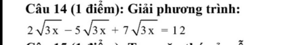 `2sqrt{3x}-5sqrt{3x}+7sqrt{3x}=12` `(ĐK:x>=0)`