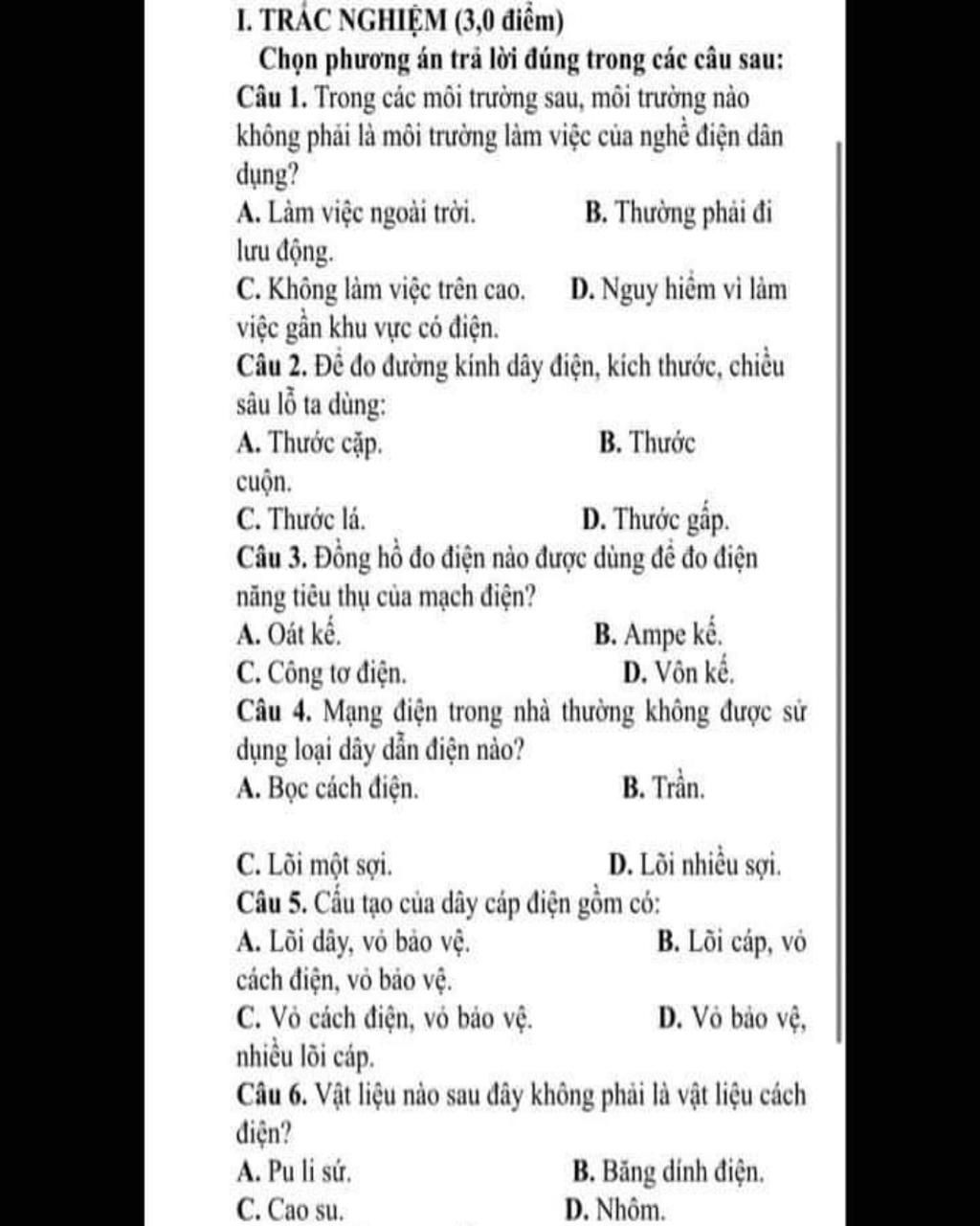 5. B gồm lõi cáp, vỏ cách điện, vỏ bảo vệ.