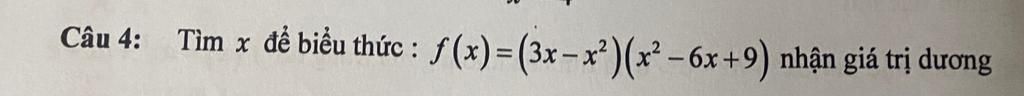 Biểu thức `f(x)` nhận giá trị dương khi `0<x<3`