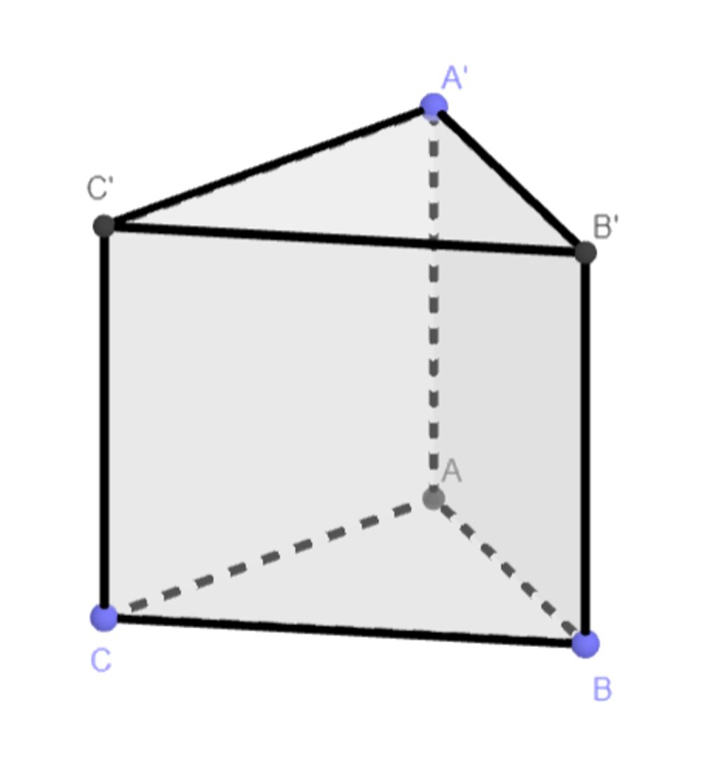 Lăng trụ đứng $ABC.A'B'C'$ có đáy là $\Delta ABC$ vuông tại $A$, chiều cao là cạnh bên