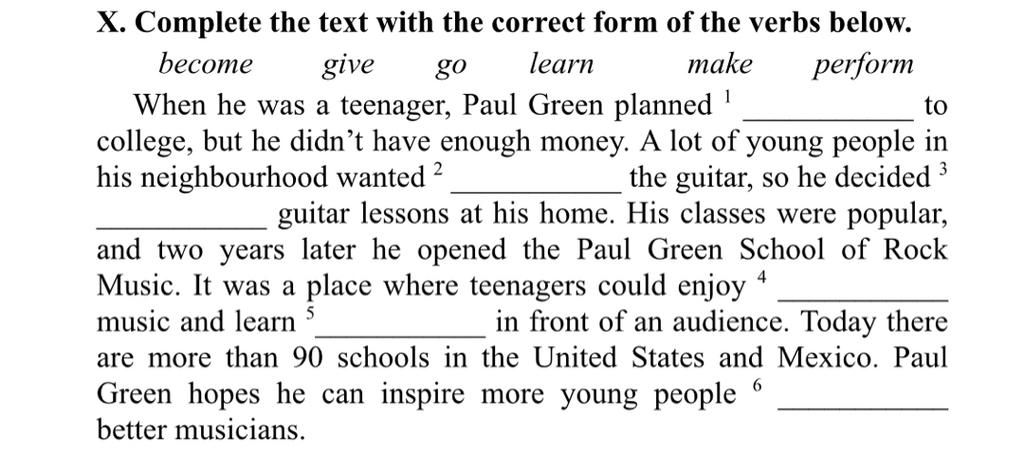 X. Complete the text with the correct form of the verbs below.