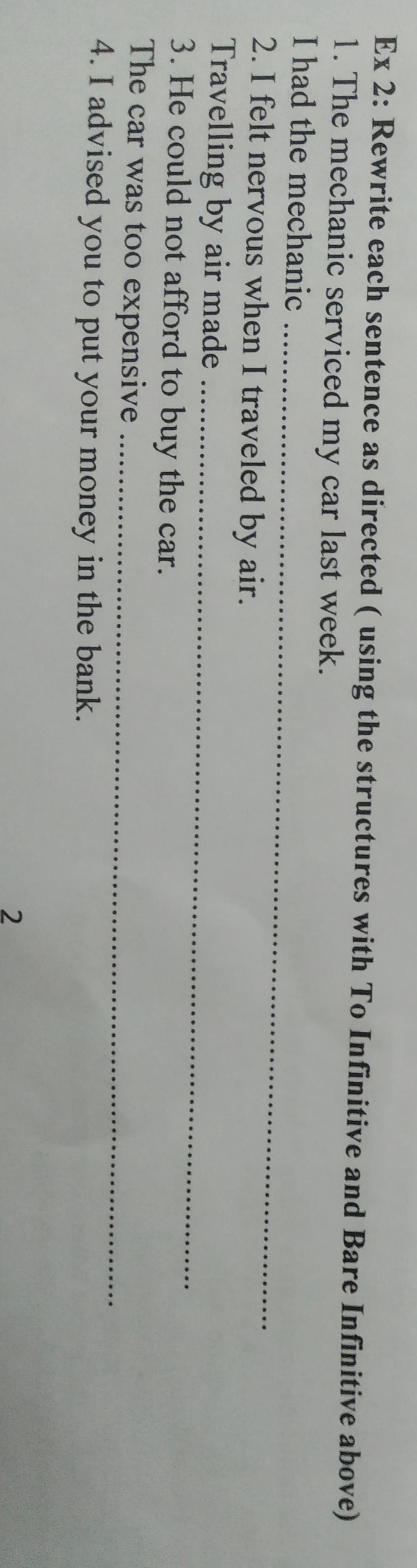 `1` I had the mechanic service my car last week.