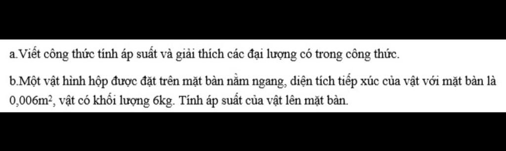 a. Công thức tính áp suất: $p = \dfrac{F}{S}$
