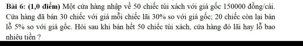 Vậy sau khi bán `50` chiếc túi sách, cửa hàng đó lời và lời số tiền: