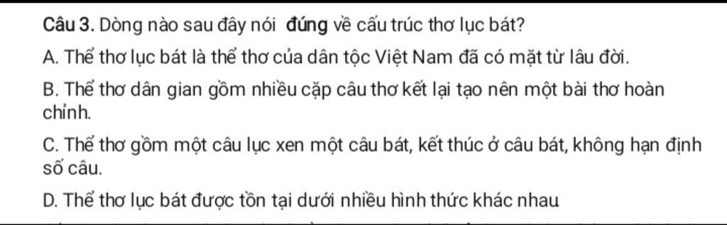 Thơ lục bát là loại thơ phổ biến trong kho tàng văn học của Việt Nam với hai câu liên tiếp tạo thành 1 cặp , câu 6 trước , câu 8 sau ( lục là 6 , bát là 8 ) . Thơ lục bát không giới hạn số câu trong 1 đoạn hay 1 bài
