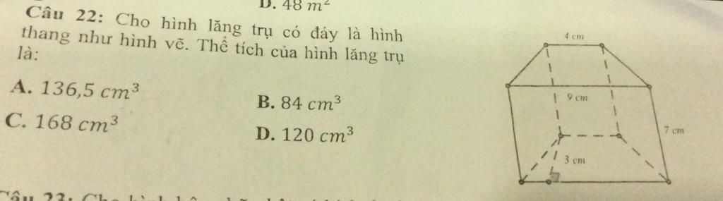 V = Sđ . h = 19,5 . 7 = 136,5 cm³