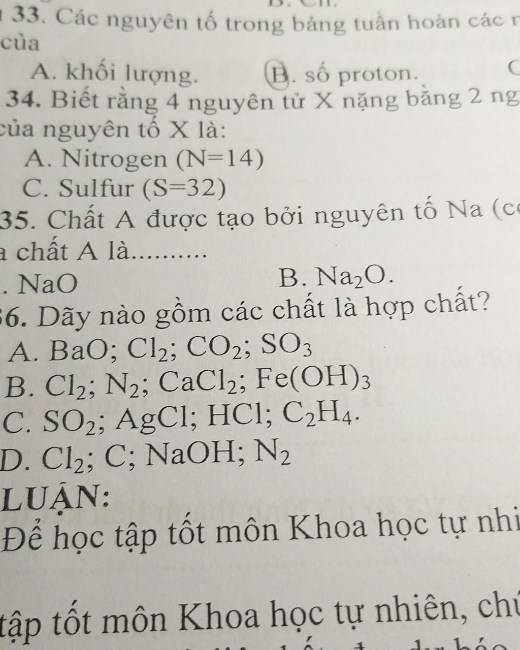 34. Biết rằng 4 nguyên tử X nặng bằng 2 ng