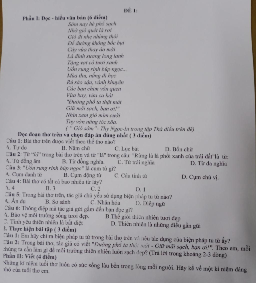 Câu 3: "Uốn rưng rinh búp ngọc" là cụm từ gì? Đáp án: B. Cụm động từ