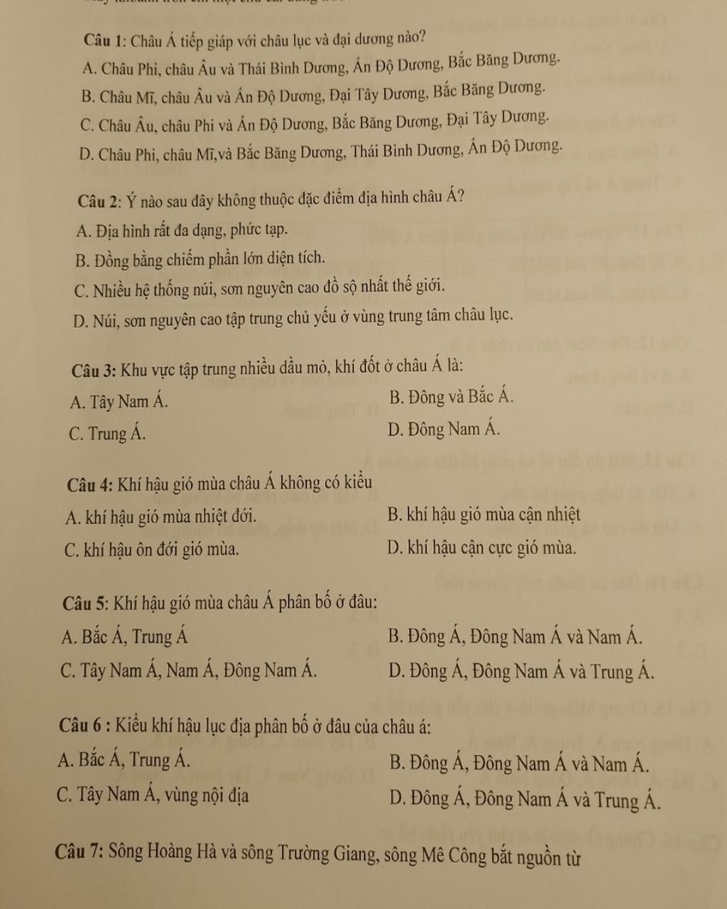 6.C - dụa vào lược đồ trang 7 SGK địa lí 8.