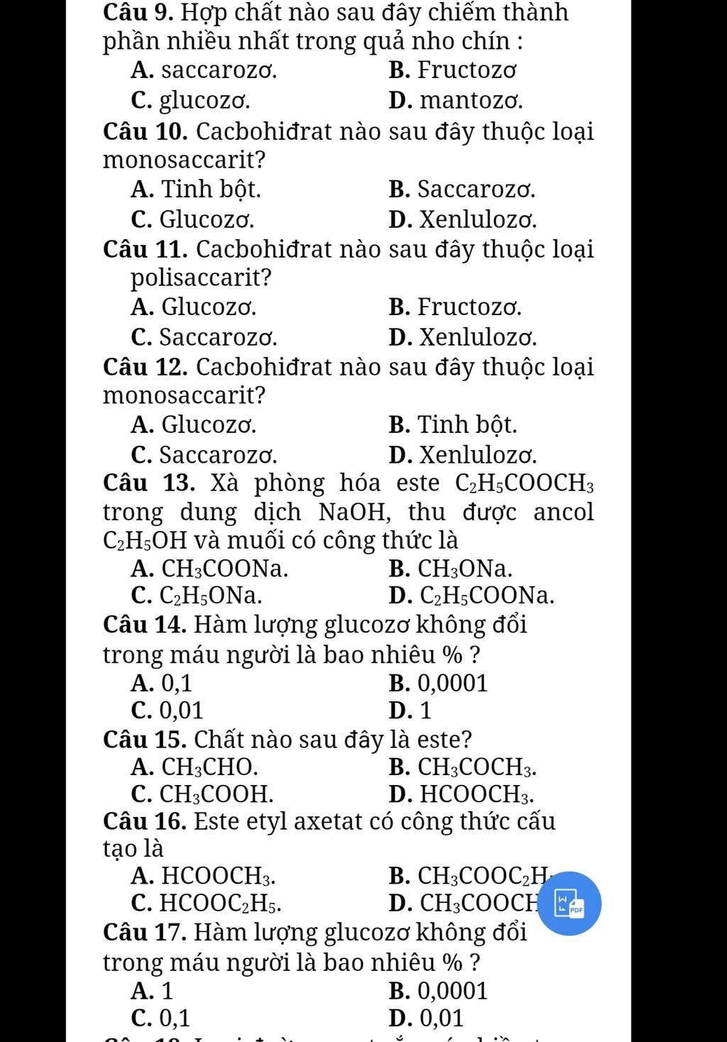 Đường glucozơ còn gọi là đường nho do có nhiều nhất trong quả nho chín.