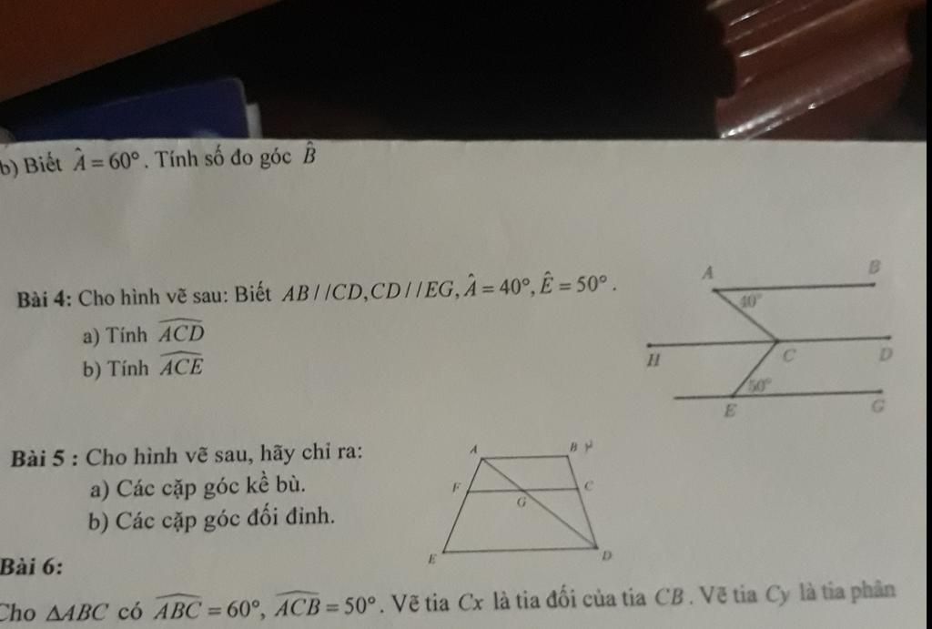 =>ACH=A=40 ( 2 góc ở vị trí so le trong)