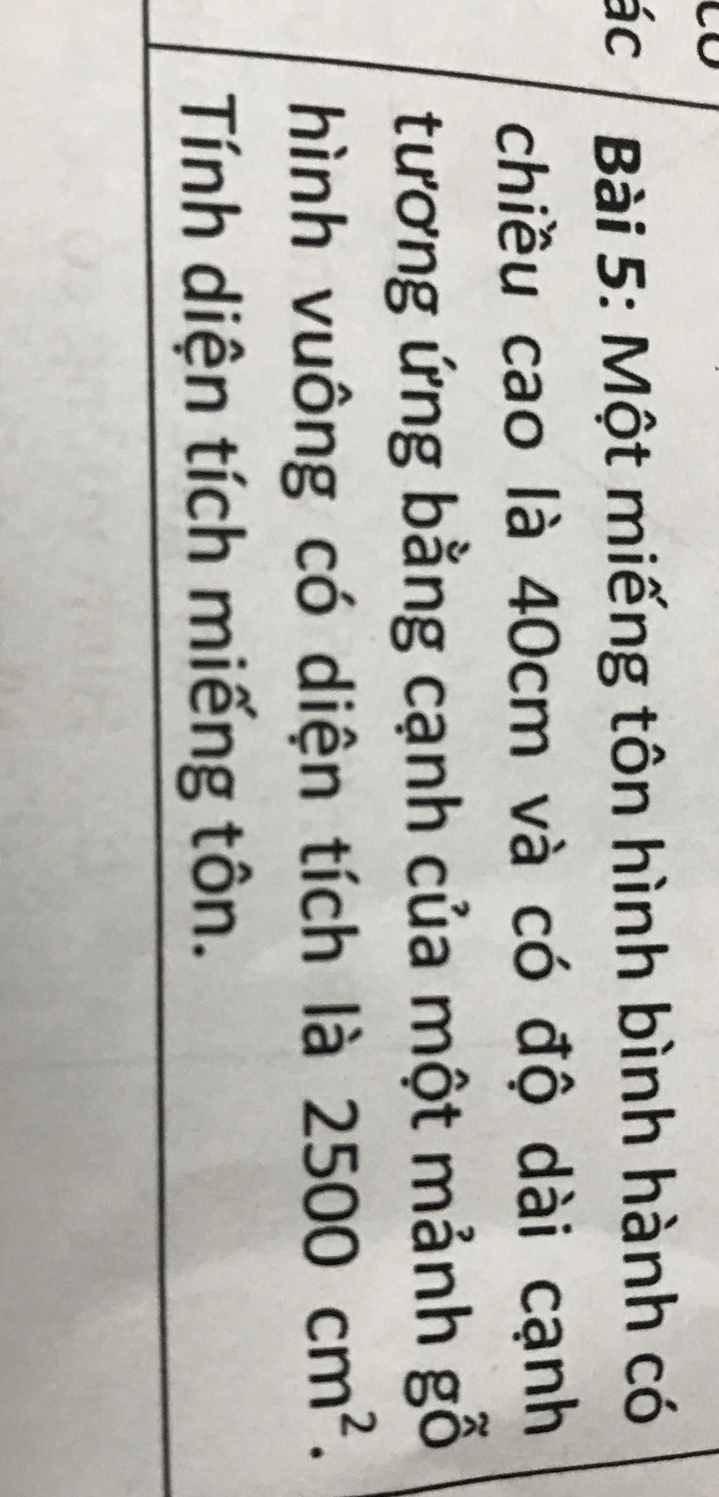 Độ dài cạnh của miếng tôn hình bình hành là: