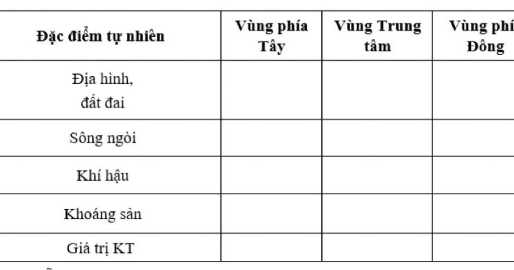 Trình bày đặc điểm tự nhiên của Hoa Kỳ theo bảng sau