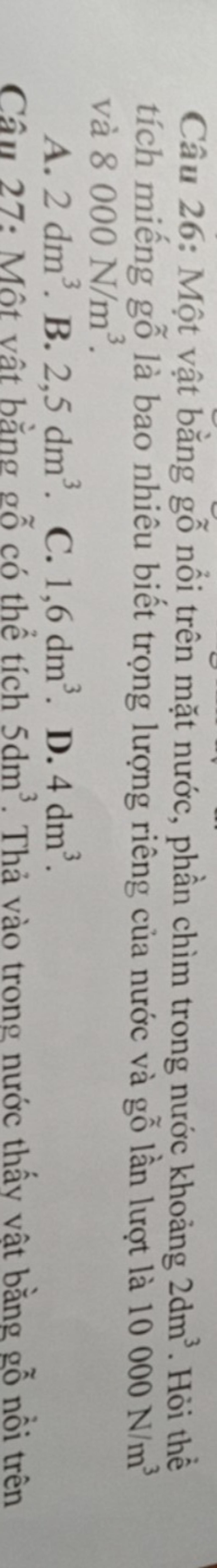 =>V(vật)=1/400 (mét khối)=2,5 (dm khối)