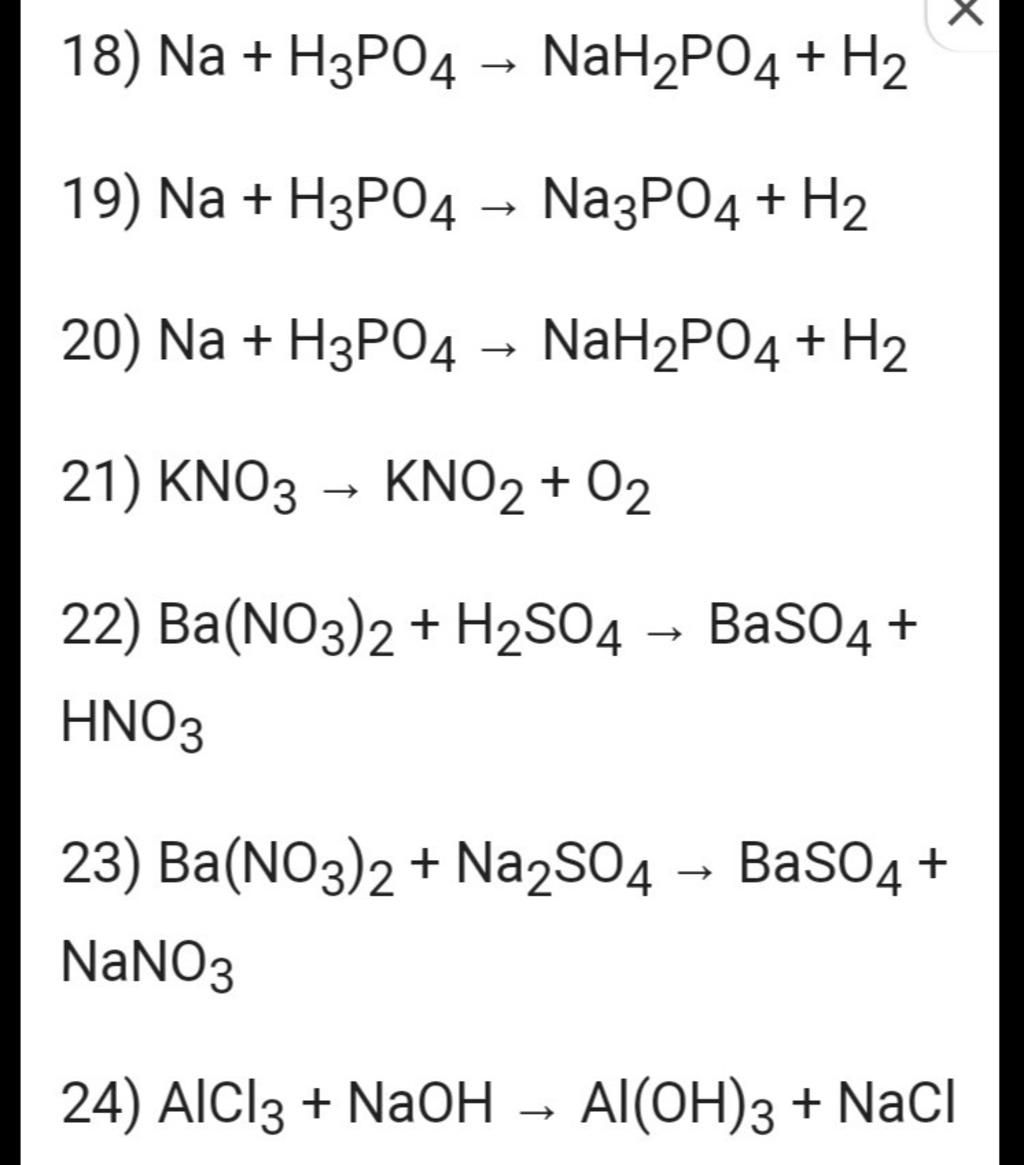 2Na + 2H3PO4 -> 2NaH2PO4 + H2 (18 20)