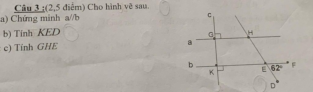 `c)` Ta có: `hat(KED) = hat(HEF) = 118^0` (đối đỉnh)