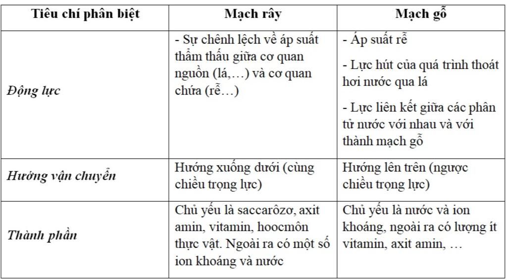 - Phân biệt dòng mạch rây và dòng mạch gỗ: