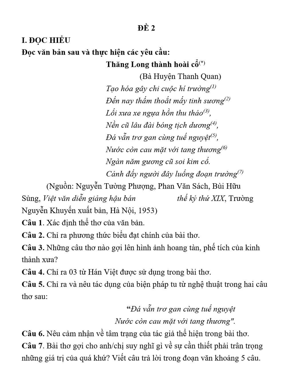 Câu 1: Thất ngôn bát cú Đường luật.