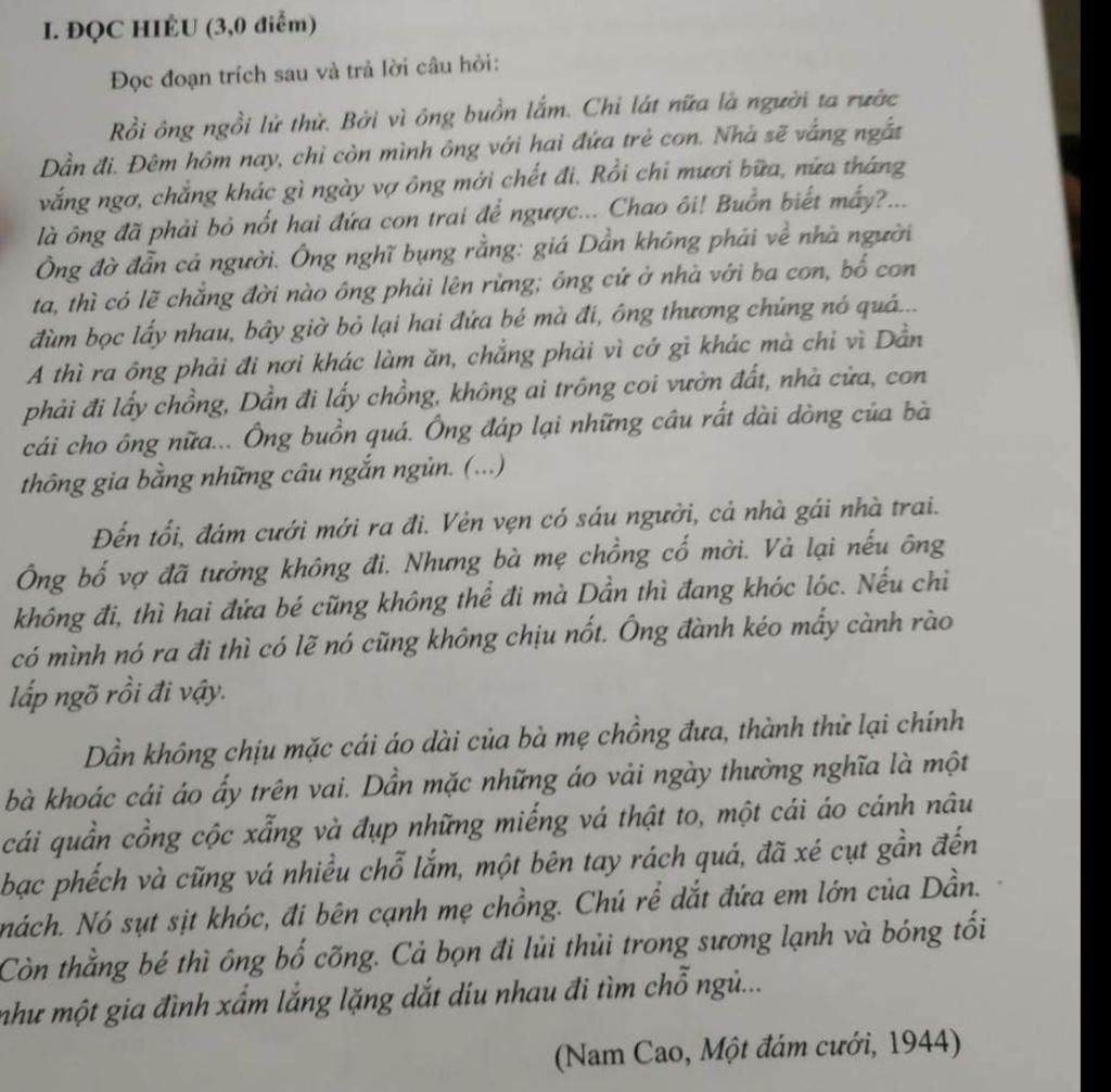 2/ Ngày đám cưới của con gái, bố Dần lại "buồn lắm" vì: nhà sẽ vắng ngắt vắng ngơ; Dần đi lấy chồng, không ai trông coi vườn đất, nhà cửa, con cái cho ông nữa.
