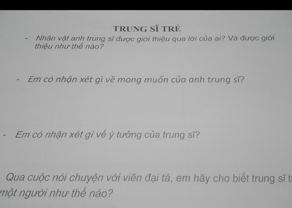 Qua cuộc nói chuyện với viên đại tá, em hãy cho biết trung sĩ ti