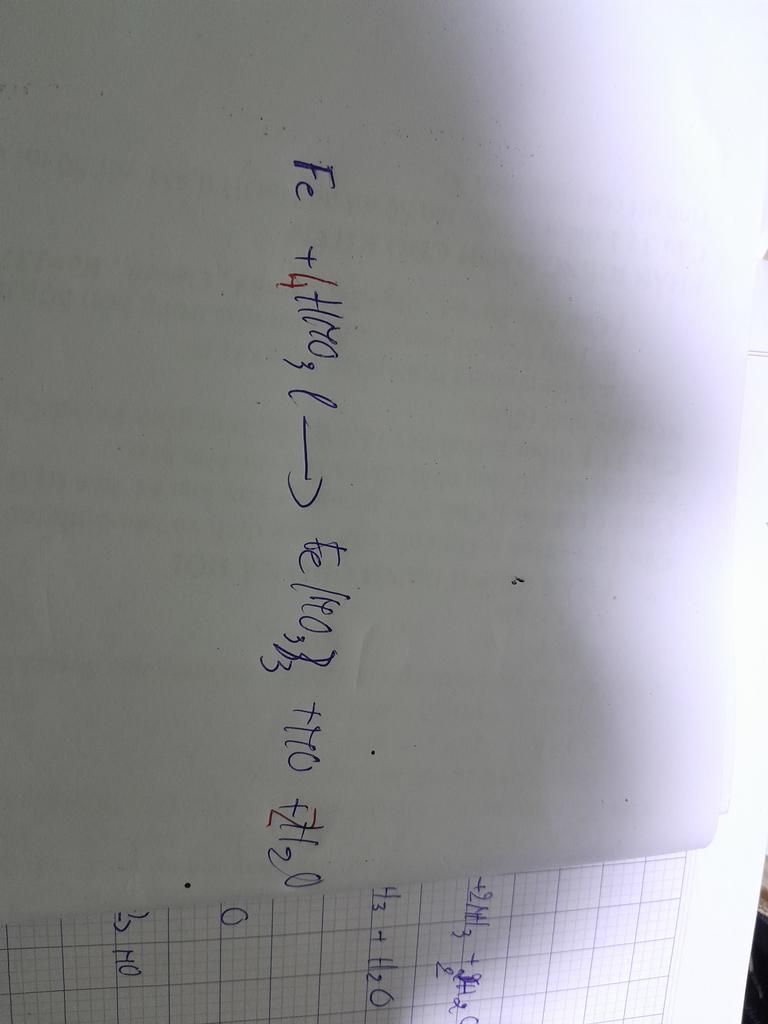 $\rm Fe + 4HNO_3 → Fe(NO_3)_3 + NO↑ + 2H_2O$